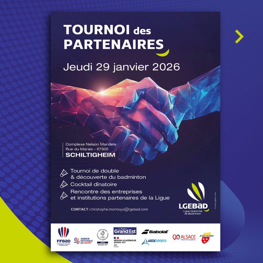 Et plus particulièrement notre Tournoi des Partenaires, dont la 2e édition aura lieu le 29 janvier 2026 à Schiltigheim : un événement convivial alliant sport, échanges professionnels et esprit d’équipe — valeurs partagées par le badminton et le monde de l’entreprise.