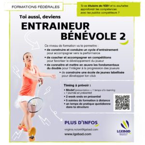 C’est le moment de franchir une nouvelle étape et de devenir Entraîneur Bénévole Niveau 2🏸 !