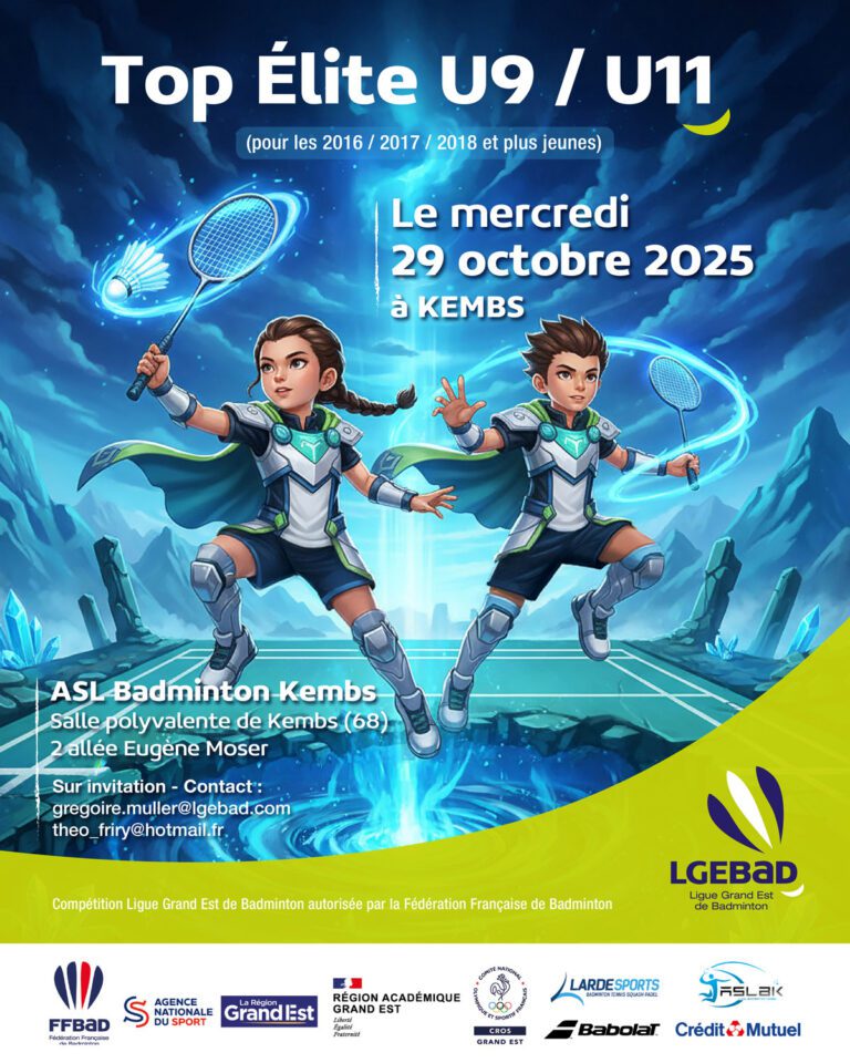 La 1e édition du Top Elite Régional de la saison s’est déroulée à l’ASL Badminton Kembs le mercredi 29 octobre 2025. Bravo à tous les