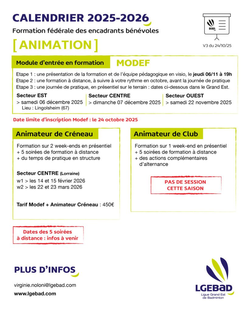 ATTENTION : pas de session ANIMATEUR CLUB en 2025-26