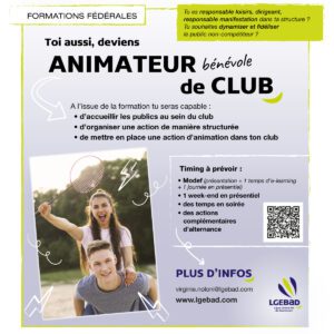 Pour en savoir plus, consultez le site de la FFBaD ou les vidéos FormaBad TV : animateur de club , animateur de créneau